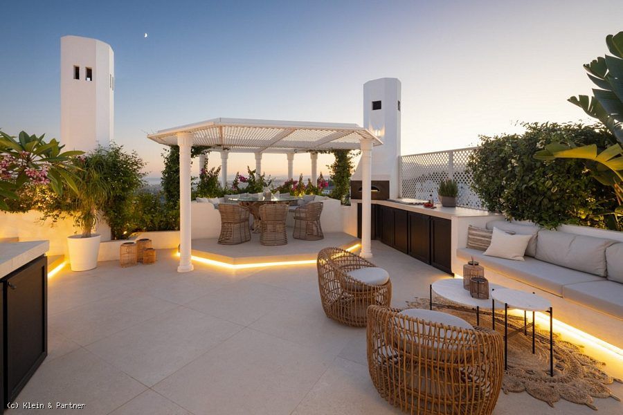Nestled in the hills of the Golden Mile, this penthouse is roughly 3 km from Marbella’s most famous beaches, about 5 km from the historic center, and 4 km from the renowned Puente Romano resort. Just a short 10-minute drive away, you can experience the vibrant atmosphere of Puerto Banús and the golf courses of Nueva Andalucía. The region combines the best of coastal and mountainous living, with hiking and nature trails only a brief walk away.