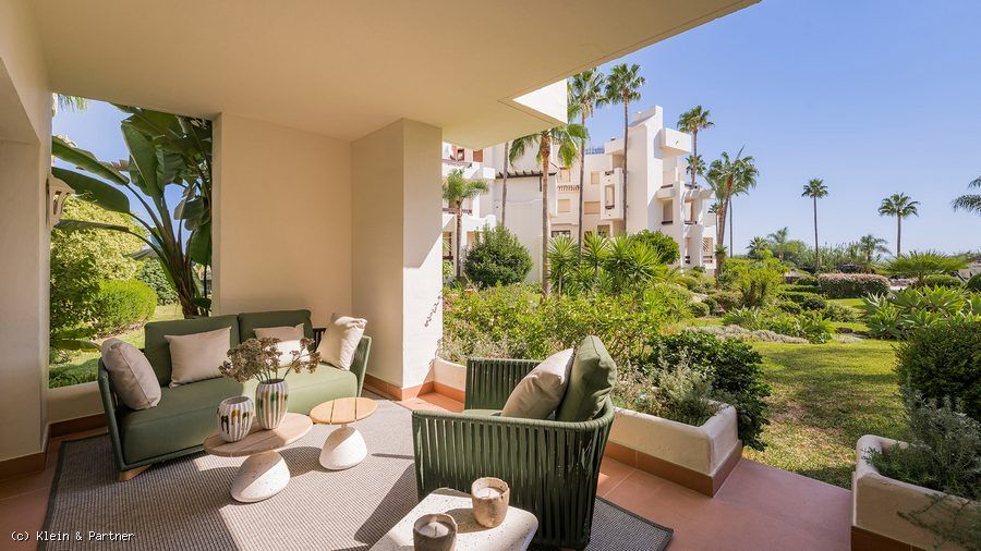 This ground-floor apartment perfectly combines luxury and tranquility. It offers direct access to a private terrace and the lush tropical gardens. The serene atmosphere of the community enhances the sense of peace, while the apartment's modern design guarantees comfort and style.