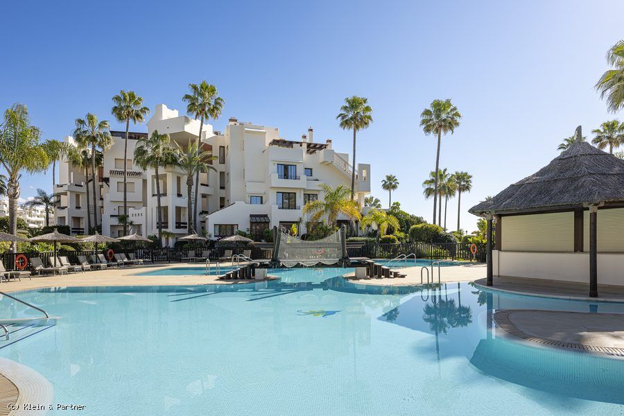 Bahía del Velerín is a prestigious community located between Marbella and Estepona. It boasts a beautiful pool area complete with a snack bar, lush tropical gardens, and 24-hour security. This exceptional location provides access to one of the finest beaches in the area. The apartment comes with an underground parking space and a handy storage room in the basement.